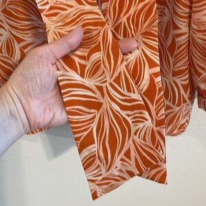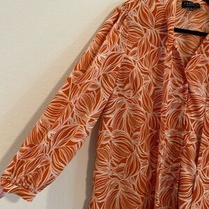 Eloquii Women’s Button Front Top Size 14 Orange Floral Print Balloon Sleeve