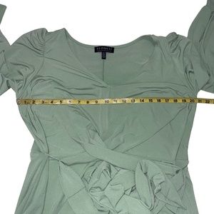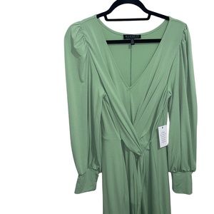 Eloquii Women's Green Long Sleeve Maxi V-Neck Cross Front/ Draped W/Tie Belt Sz 14, NWT, Pale Green Color, Cross front dress, Front twist with Non removable fabric self ties, close fit, Form fitting, Lined, Waist seam, Long sleeves, Stretchy Jersey Knit.