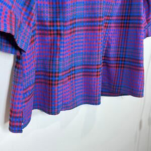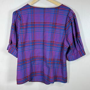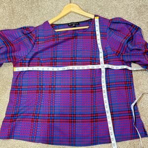 Eloquii Womens Plus Size Blouse Ballon Sleeve Plaid Round Neck Blue Pink Size 18