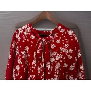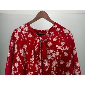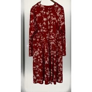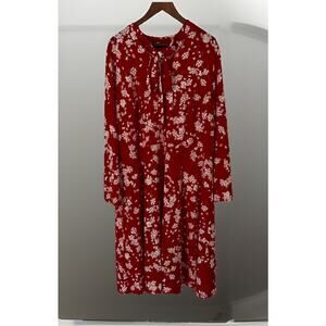 Eloquii Women’s Red Floral Midi Dress Plus Size 20 Long Sleeves A-line Tie Neck