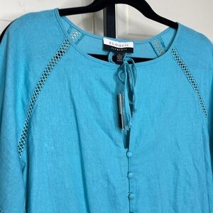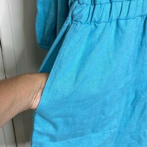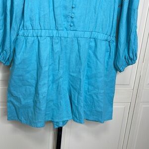 Eloquii Women’s Romper Shorts 14 Blue V-Neck Linen 1/2 Button Sleeve NWT