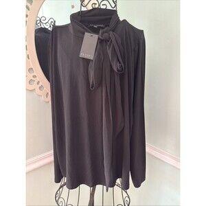Eloquii Womens Size 22 /24 Pullover Career Blouse Black V-Neck Tie Bow