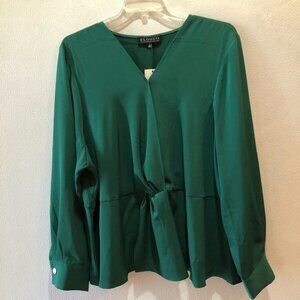 Eloquii Womens Size 28 Emerald Green Long Sleeve V Neck Blouse Shirt Top