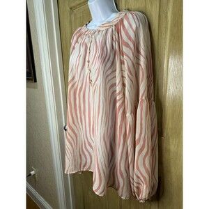 Eloquii Women's Top Blouse Balloon Long Sleeve Size 24 Beige Pink Sheer