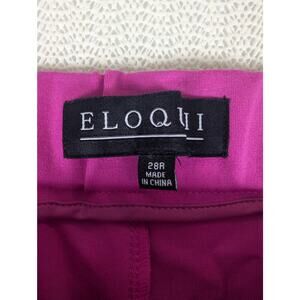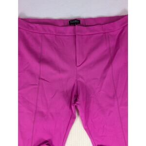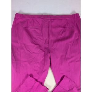 These vibrant magenta ankle pants from Eloquii are a bold and stylish piece perfect for both work and social events. Designed with a sleek, structured silhouette and slight stretch, they offer a flattering fit that can easily transition from office wear to an evening out. The pants feature faux back pockets, a clean front zip closure, and a mid-rise fit. Likely from the early 2020s, they fit into preppy, glam, and minimalist aesthetics. Made from a soft, flexible blend of 59% rayon, 36% nylon, and 5% spandex with 100% polyester trim.