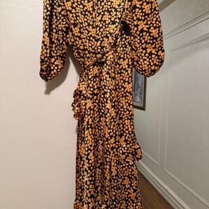 Eloquii Yellow and Black Floral Maxi Wrap Dress - 18