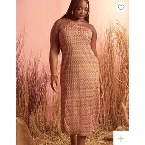 Stylish zigzag pattern. Halter neckline. Midi length. Perfect for any occasion.