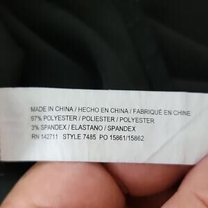 Black, trumpet style mini skirt from Eloquii. Made from a poly/spandex blend fabric. Features a concealed back zipper and clasp closure. Pre-owned and in good condition with light signs of wear and wash. No visible flaws. In women's plus size 20.