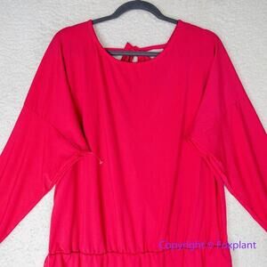 Eloquii coral red dress with faux wrap back and tie neck, size 16
