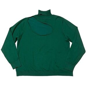 Eloquii green long sleeve turtle neck sweater with front cut out detail