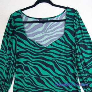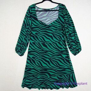 Eloquii green zebra animal print Puff Sleeve Flounce Dress, size 14