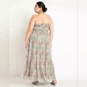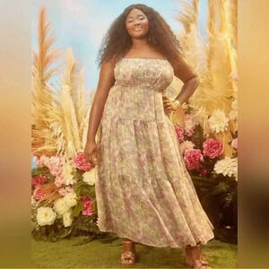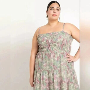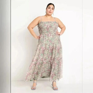 Eloquii pastel green & lavender floral NWT smocked sleeveles maxi dress sz 14
