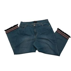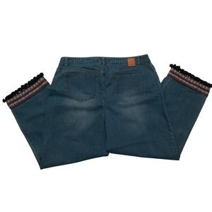 Eloquii wide leg high rise jeans boho hippie fringe embroidery sz 16