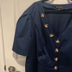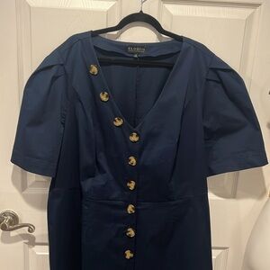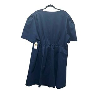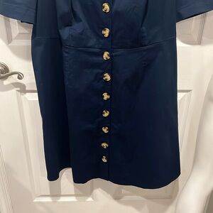 Eloquii navy blue v neck button down short sleeve dress knee length/ midi depending on height