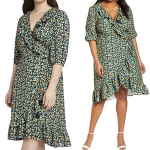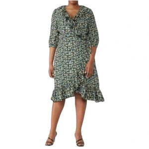 Eloquii x Jason Wu Wrap Dress V Neck Floral Patterned Ruffled Wrap Dress Size 10