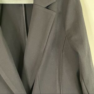 This blazer is in excellent pre-owned condition. The only flaw is that one of the buttons on the cuff is broken in half. It has a double breasted single button closure and piping details down the front. It is a bit heavier weight and perfect for the office!