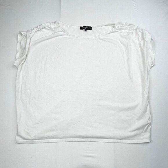ELOQUII Ruched Tee. Gently preowned in overall good condition. No rips or holes. a couple of faint spots. This has been washed so it may not come completly out.