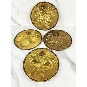 Elpec England Brass Embossed Fruit Wall Hanging Plaques 7 1/2" Home Decor 80s x4