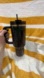 Stylish Stanley tumbler with a handle. Features an iridescent black finish. 40oz.