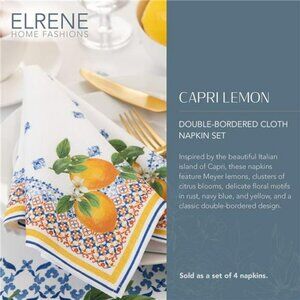 Elrene Lemon Cloth Napkins Set of 4 Mediterranean Floral Table Decor 17x17