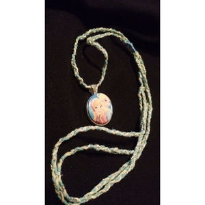 Elsa & Anna Frozen Pendant & Blue/White Cord Choker Necklace