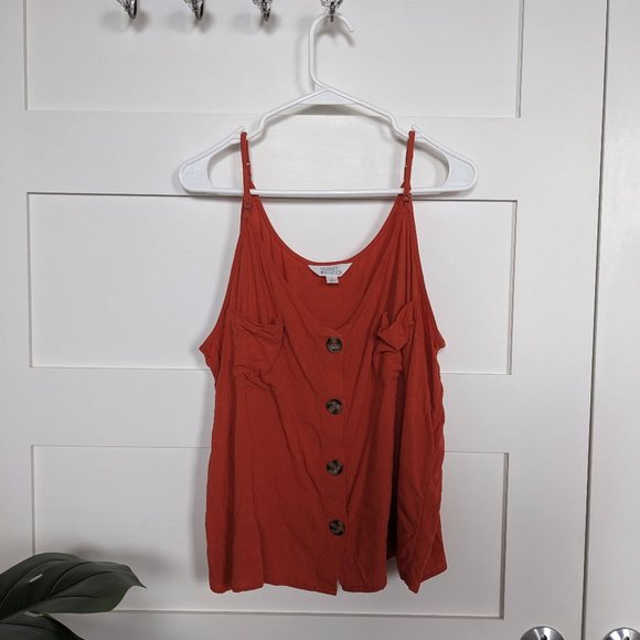 The Market & Spruce Elsa Button Front Cami is a versatile addition to your wardrobe. Wear this flowy top with jeans and sandals for a casual look, or style it with a skirt and heels for a night out with friends.