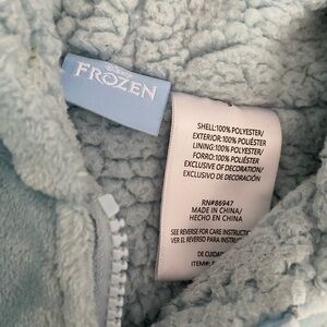 Girls size 5 frozen Elsa zip up jacket from Costco. Very thick, warm and soft! Was a very loved jacket but still great shape! Most wear is the stain spots on the sleeves as pictured. Smoke free home