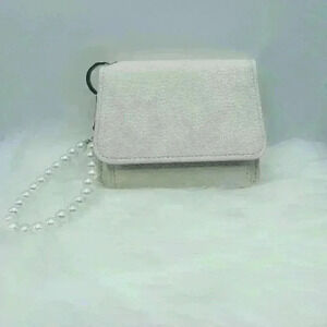Elsa White Wallet w/ Faux Pearl Keychain Strap