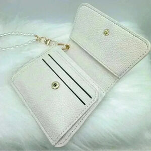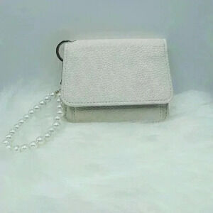 Elsa White Wallet w/ Faux Pearl Keychain Strap