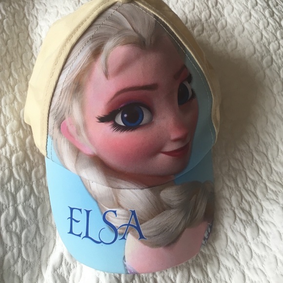 Cute Disney Girls' Hat with Frozen Princess Elsa featuring a creamy yellow complemented by light blue hues. Made of soft and durable 100% cotton, it has a 2" bill and 5" crown height for a perfect child fit.