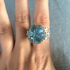 Beautiful ring inspired from the Disney snow queen Elsa. Silver detailing with blue gem. *not real silver* adjusts to any finger