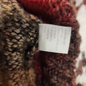 This is an Elsamanda sweater sold at Anthropologie for women in size L. It is a Fair Isle patterned, chunky-knit sweater with long sleeves, a turtleneck neckline, and a pullover closure. It is machine washable and made of a blend of viscose, alpaca, wool, and acrylic. The sweater features a colorful, classic Southwestern theme, and is heavyweight for winter and fall seasons.