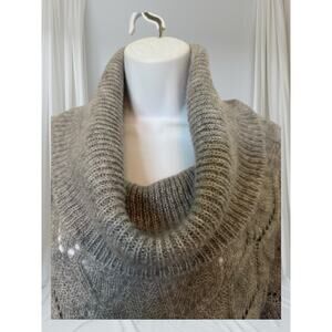 Elsamanda Italy Mohair Blend Cowl Neck Sweater Oversized Knit Taupe Gray
