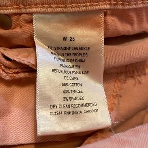 Else Straight Leg Ankle Jeans SZ 25. Inseam is 27”. Rise is 8 1/2”. Waist measures 13” laying flat. Straight leg ankle. 55% Cotton, 43% Tencel and 2% Spandex. Beautiful pink/peach color.