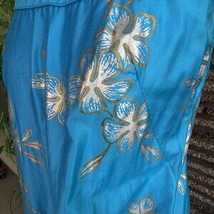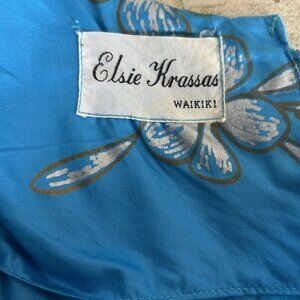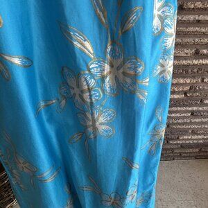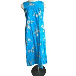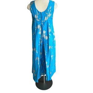 Elsie Krassas Blue Silver Floral Maxi Tiki Dress With Back Pleat Size Small