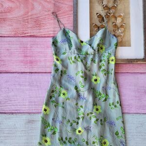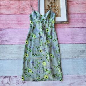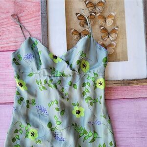 Elspeth Gibson Green Floral Silk Sleeveless Midi Slip Dress Size 10US