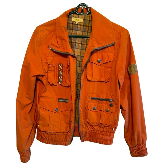 Sonnenreiter by Elta Nova. Riding wind breaker in orange imperfections shown in pictures some slight discoloration and stains. All the zippers in working condition smoke-free home all serious offers considered
