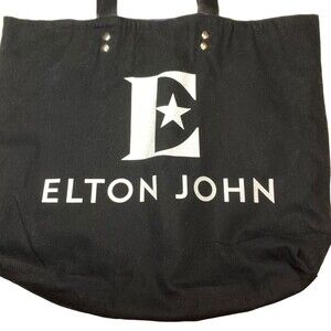 Elton John Farewell Yellow Brick Road Tour Black Canvas Tote Bag. In good condition. Pleather handle. Canvas tote. Approx measurements laying flat: 17 x 14 x 3