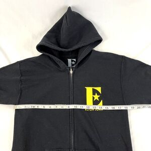 This hoodie is pre-owned and is missing the hood string but is in nice pre-owned condition otherwise. This hoodie is a size small full zip. Please see all pictures and measurements for details on this hoodie and thanks for looking!!