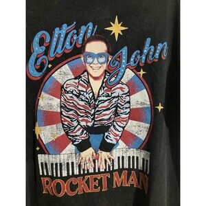 Shine like a star with this official Elton John Rocket Man women's t-shirt! Featuring dazzling rhinestone embellishments, this medium-sized tee is a must-have for fans of the legendary musician. Perfect for concerts, casual outings, or adding a touch of glam to your wardrobe.