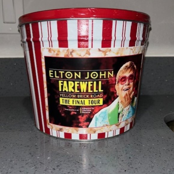 Elton John The Popcorn Factory SEALED Popcorn Tin Yellow Brick Road Final Tour