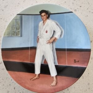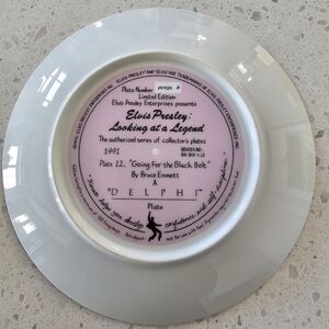 Authorized Series of Collector's Plates 1991. Plate 19429 A, Plate 12. "Going For the Black Belt" by Bruce Emmett "A Delphi" Plate. Bradex No. 84-D19-1.12. 1991 Elvis Presley Enterprises Inc.