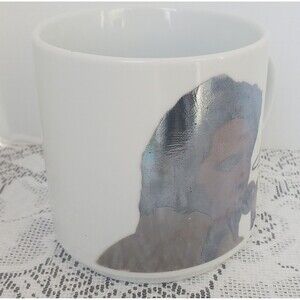 Elvis Presley Coffee Mug Tea Cup Holographic Silhouette Silver White 3.25"