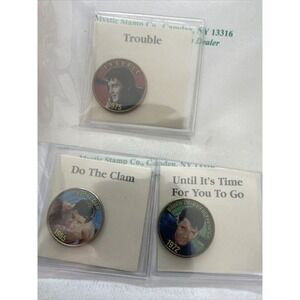 Elvis commemorative coinage originally published and painted by Mystic, sets of 3 cost $55. There are 21 of those and a 20 year old Graceland ticket stub that was in with the bunch.
