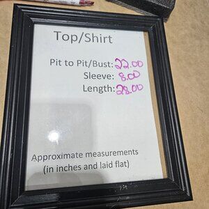 Approximate flat measurements: Pit to Pit: 22 in, Sleeve: 8 in, Length: 28 in