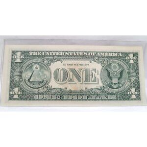 Brand new and in its protective plastic sleeve. Bill is unused and crisp. Plastic sleeve has scratches and may have a little bit of yellowing/discoloration due to storage.