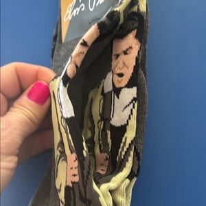 Step into style with these Elvis Presley gray socks. Perfect for fans and fashion enthusiasts alike.