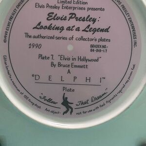 Elvis Presley Plate # 272 A Limited Edition 1990 Plate 7 “Elvis in Hollywood “ By Bruce Emmett