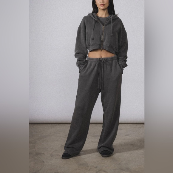 Elwood sweat set - Core Straight Leg Sweatpant and Babydoll Crop Zip Hoodie in Vintage Olive. Hoodie size M and sweatpants size S. Used the photo of the grey set to show the fit of both hoodie and pants, but it’s the olive green version! Worn a few times, great condition