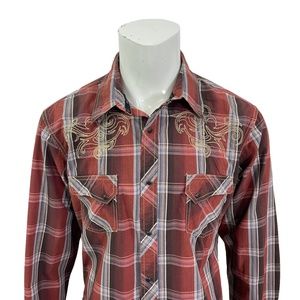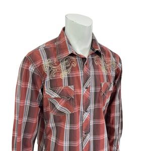 Ely Cattleman 1878 Snap Western Rockabilly Embroidered Shirt Rust Plaid Mens XL